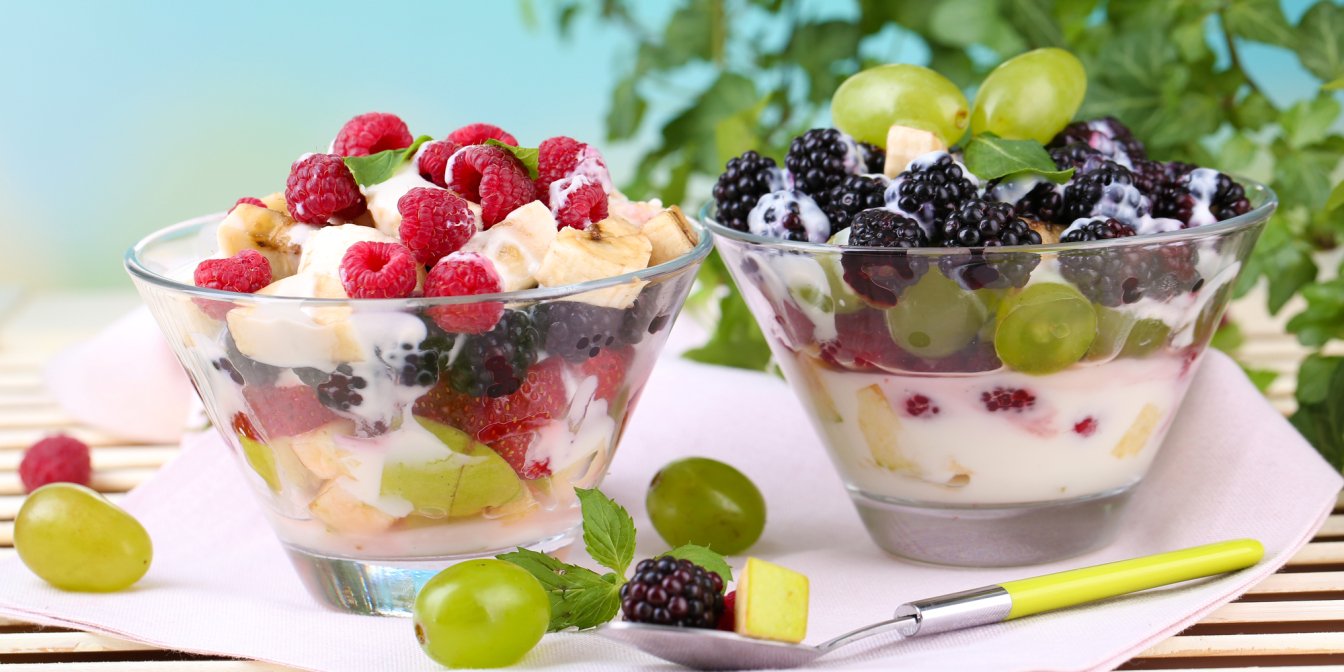 Соедините подготовленные ингредиенты и залейте охлажденным йогуртом. Перемешайте и сразу же подавайте.