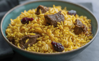 Плов — блюдо, в котором используются различные продукты: от нута, айвы, барбариса до изюма и кизила. Попробуйте блюдо именно с последним ингредиентом.