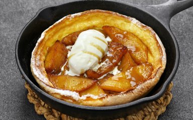 Этот очень большой пышный голландский панкейк можно готовить как завтрак или десерт. Его лучше всего подать с яблоками, приготовленными на сливочном масле со специями.