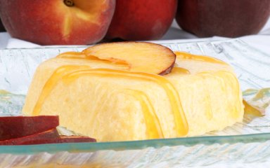 Баварезе — это холодный торт. Для его приготовления почти ничего не нужно разогревать, разве что желатин. При этом можно использовать любые фрукты — мы остановили свой выбор на свежих инжирных персиках.