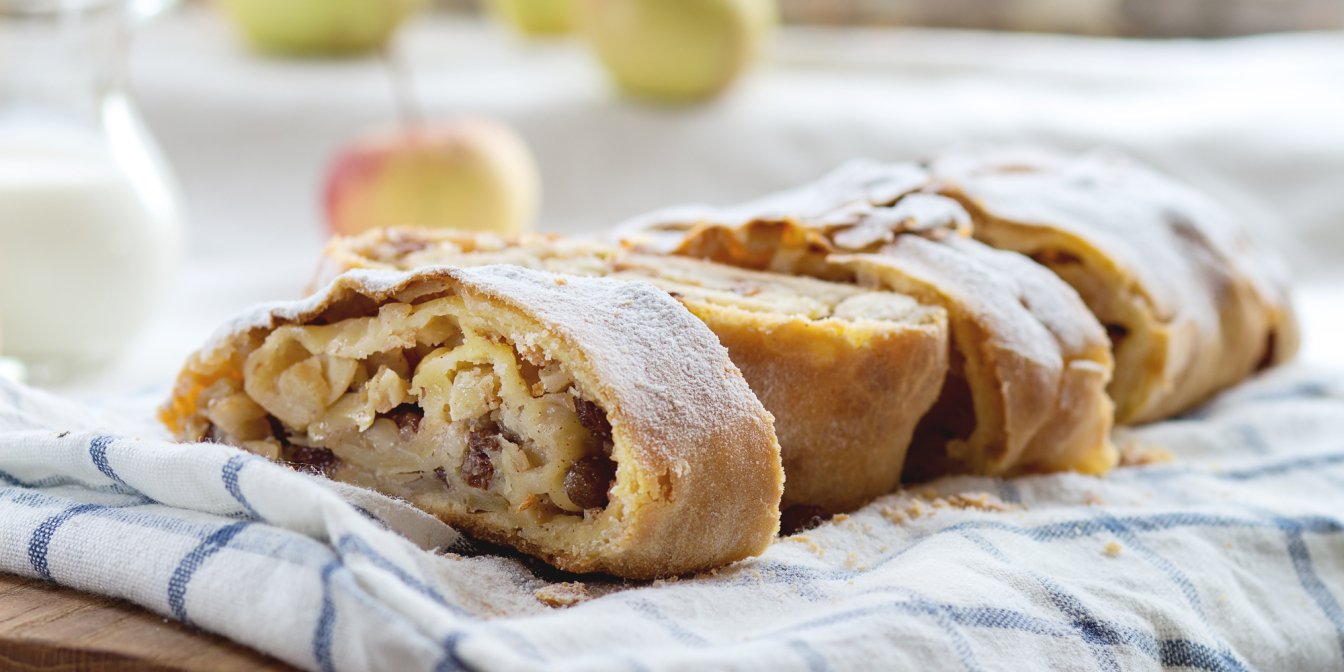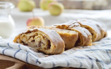 Хрустящее тесто с мягкой фруктовой начинкой из груш и изюма покорит вас сразу же. Очаровательный микс вкусов и ароматов, который может легко конкурировать с классическим яблочным штруделем.