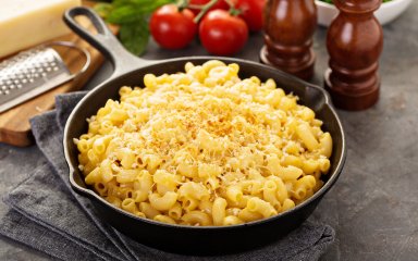 SHUBA выбрала для рецепта моцареллу, грюйер, чеддер и пармезан, но вы можете добавить голубой сыр, рикотту, фету и другие по вашему вкусу. Главное — сохранить баланс вкуса. Вы также можете добавить в запеканку овощи или белок — будут хорошо смаковать кусочки куриного или индюшачьего филе.