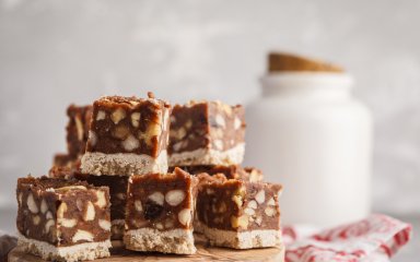 Тесто готовится быстро и не требует охлаждения, так что батончик может быть на вашей тарелке за 30 минут. Ингредиенты для приготовления этого рецепта просты, а для посыпки вы можете взять несколько видов шоколада, орехи и сухофрукты, а также семена по вашему вкусу.