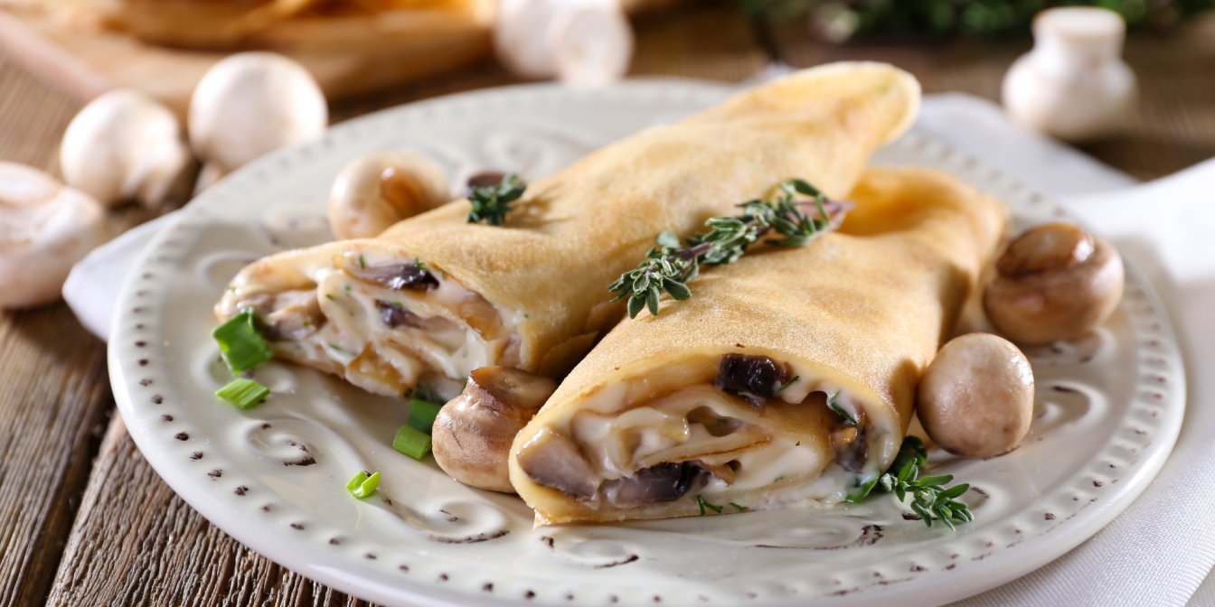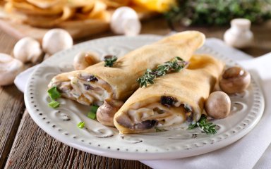 Обильный завтрак из блинов с помидорами и грибами пробуждает наш аппетит и заряжает энергией на полдня. Итак, начните свой день правильно!