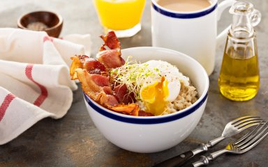 - Также с мисо-овсянкой отлично сочетаются сыр и жареный бекон.