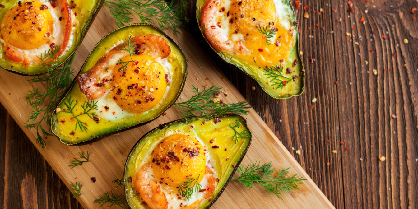 Универсальный завтрак: запеченный авокадо с копченым лососем и яйцом