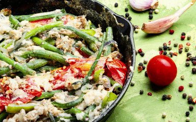 Спаржевая фасоль сочетается почти с любыми продуктами на кухне, поэтому, если есть время — можете экспериментировать. Но если времени действительно мало, прекрасно подойдет и обычное блюдо — яичница со спаржевой фасолью, томатами и сыром.