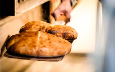 Выпекайте хлеб 20-30 минут, он должен стать жестким и светло-золотистым. Дайте остыть. Если вы хотите брать хлеб с собой в дорогу, можете завернуть его в листья — салатную зелень или листья с деревьев.