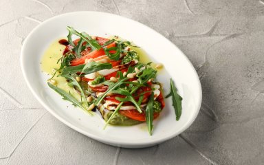 Что интересно, все основные составляющие блюда (кроме помидоров, это еще и базилик, и моцарелла) совпадают цветами с национальным флагом Италии. Поэтому вполне понятно, почему капрезе входит в список самых популярных блюд этой гостеприимной страны.