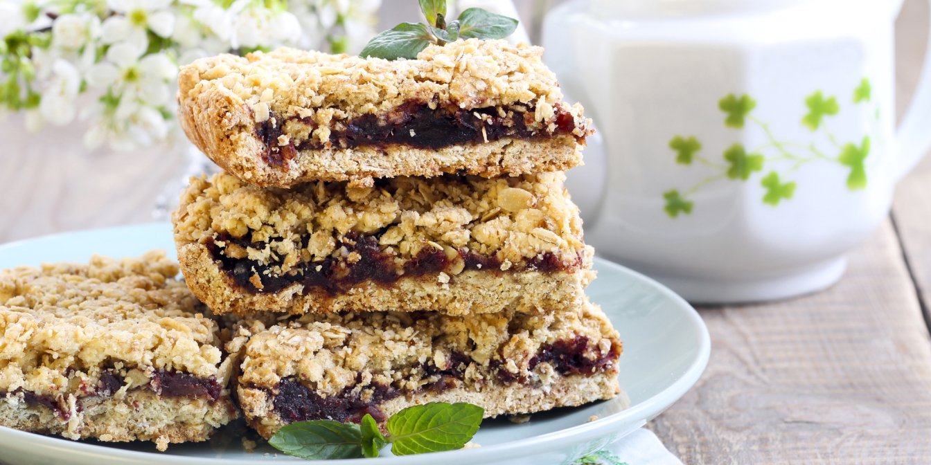 Овсяные батончики с джемом получаются одновременно хрустящими и жевательными, сладкими и солеными, а также фруктовыми. Овсянка делает их удивительно вкусными, а варенье — нежными.