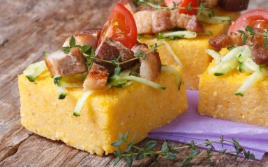Полента с беконом хорошо подходит в любое время: на завтрак, обед или ужин. Сочетание кукурузной каши, бекона и овощей не оставят равнодушными никого — проверено на себе!