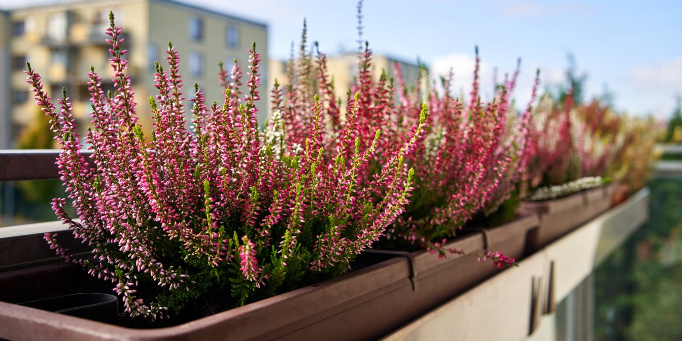 Вереск, который будет цвести на открытом воздухе, после покупки необходимо пересадить в большие балконные горшки. Правило — 15 см в горшке на растение.