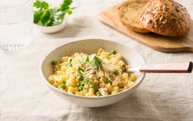 Паста с зеленым горошком вкуснее всего в горячем виде.
