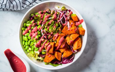 Это простое и изысканное полноценное блюдо одновременно. Лучше подавать теплым. Используется консервированная фасоль, можно попробовать и с отварной.