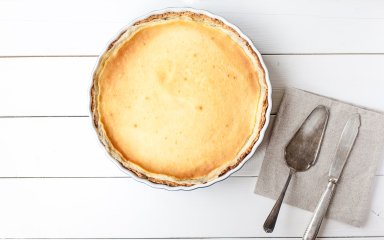 Чтобы поверхность пирога была однородной, простучите его. Разогрейте духовку до температуры 180 ℃ и отправьте чизкейк выпекаться на 10 минут, затем уменьшите температуру до 110 ℃ и оставьте форму в духовке еще на час.