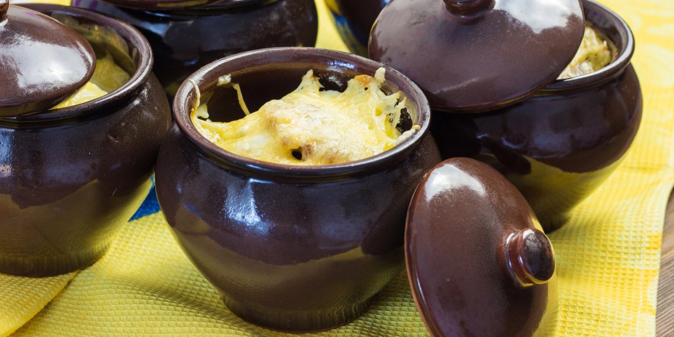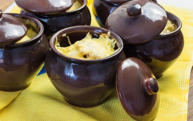 Выпекайте в духовке, разогретой до 180°C, 15-20 минут, пока тесто не зарумянится. Достаньте горшочки из духовки и сразу подавайте.