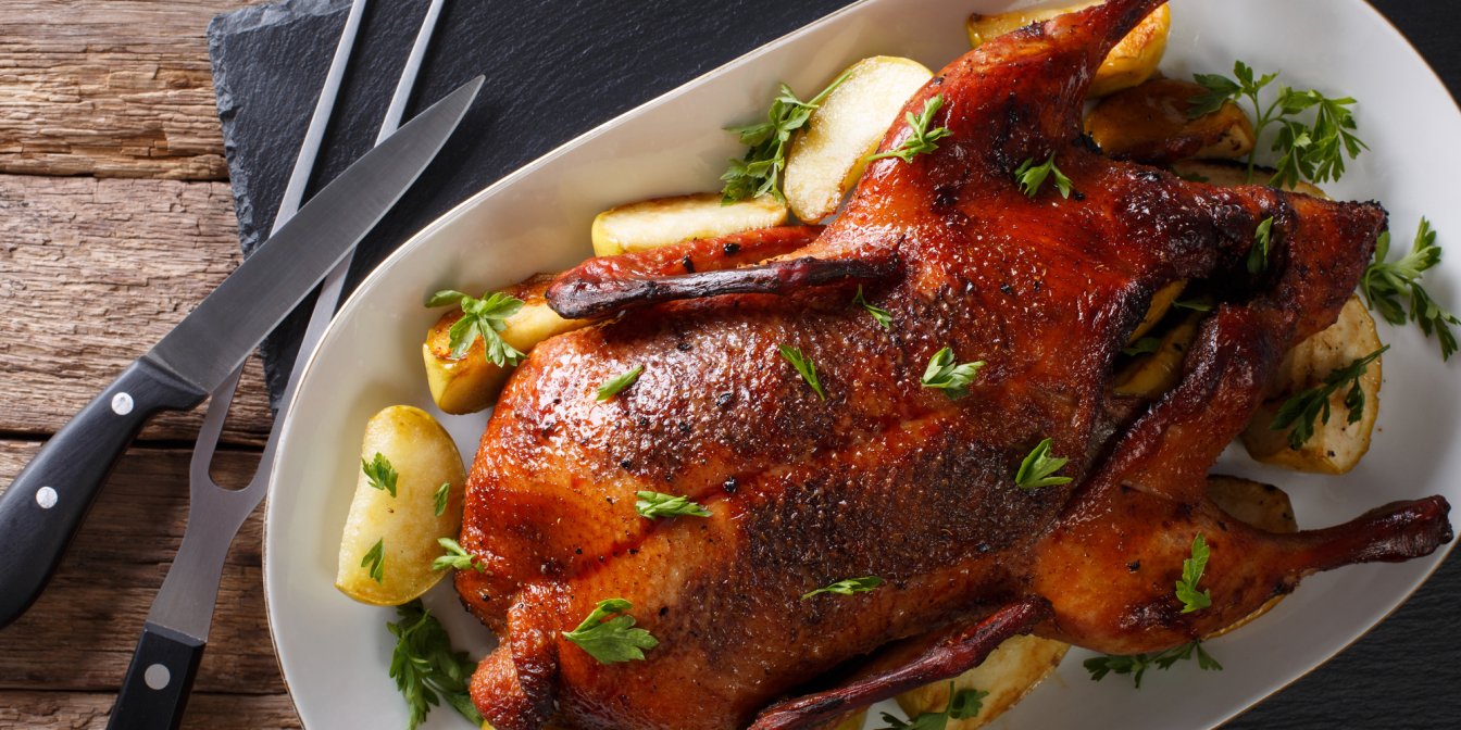 Запеченный гусь с картофельной начинкой по нашему рецепту — вкусное блюдо, идеально подходящее для праздников.