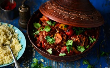 С тажином с бараниной, сухофруктами и специями вы принесете на стол буйство марокканских красок, запахов и вкусов. Чтобы усилить вкус этого блюда, подавайте его с чудесным зеленым чаем!