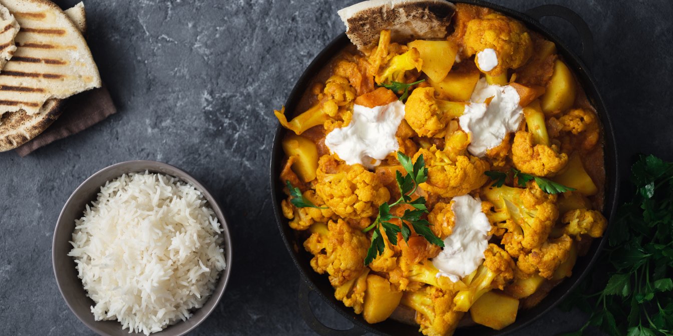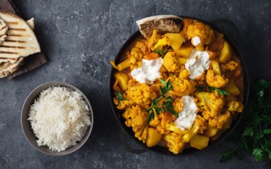 Карри из цветной капусты — индийский гарнир, который, кроме самой цветной капусты, также содержит сельдерей, чечевицу и карри. Он богат цветами и ароматами, а еще готовится из исключительно растительных ингредиентов, поэтому подходит также для вегетарианцев и веганов.