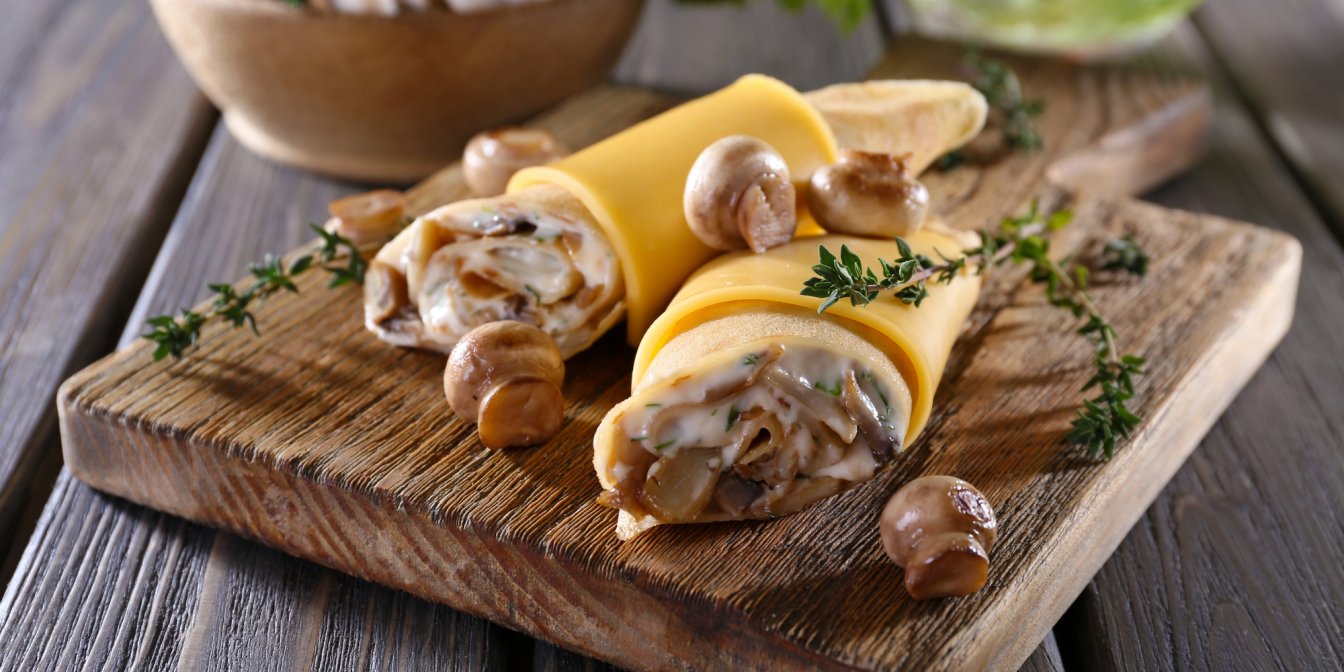 Вкуснее обычного: блины с шампиньонами и сыром