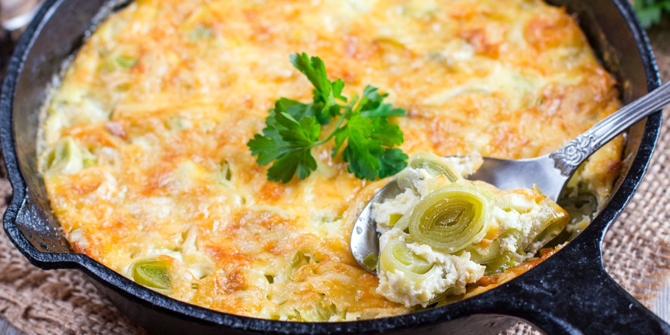 Под сырным соусом: запеканка из курицы и лука-порея