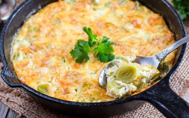 Попробуйте эту запеканку с курицей и луком-пореем, а затем ознакомьтесь с нашим рецептом оладий из лука-порея на завтрак.