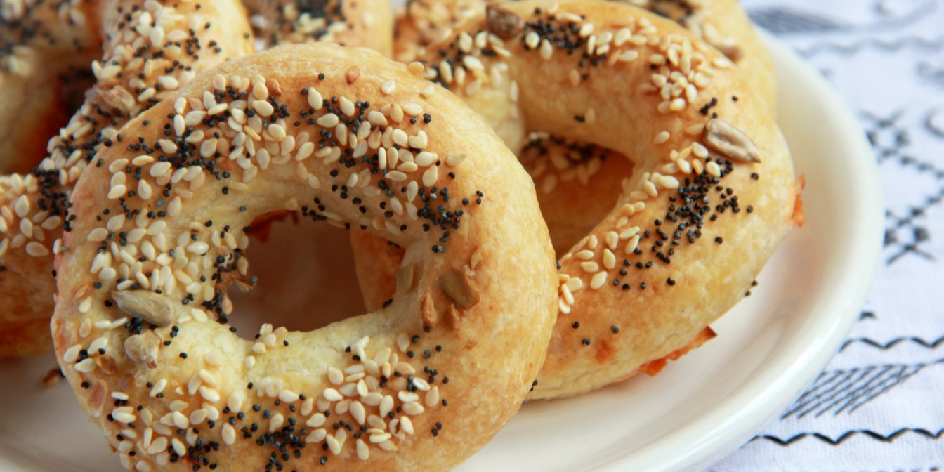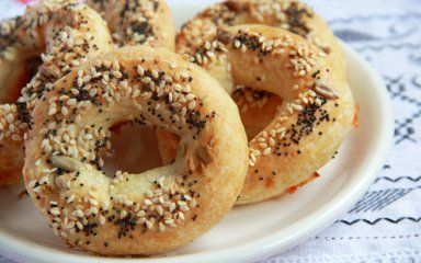 Переложите кольца на противень, застеленный пергаментной бумагой, и смажьте взбитым яйцом. Посыпьте семенами кунжута и выпекайте при 180°C 30 минут. Пончики с мясом готовы к подаче!