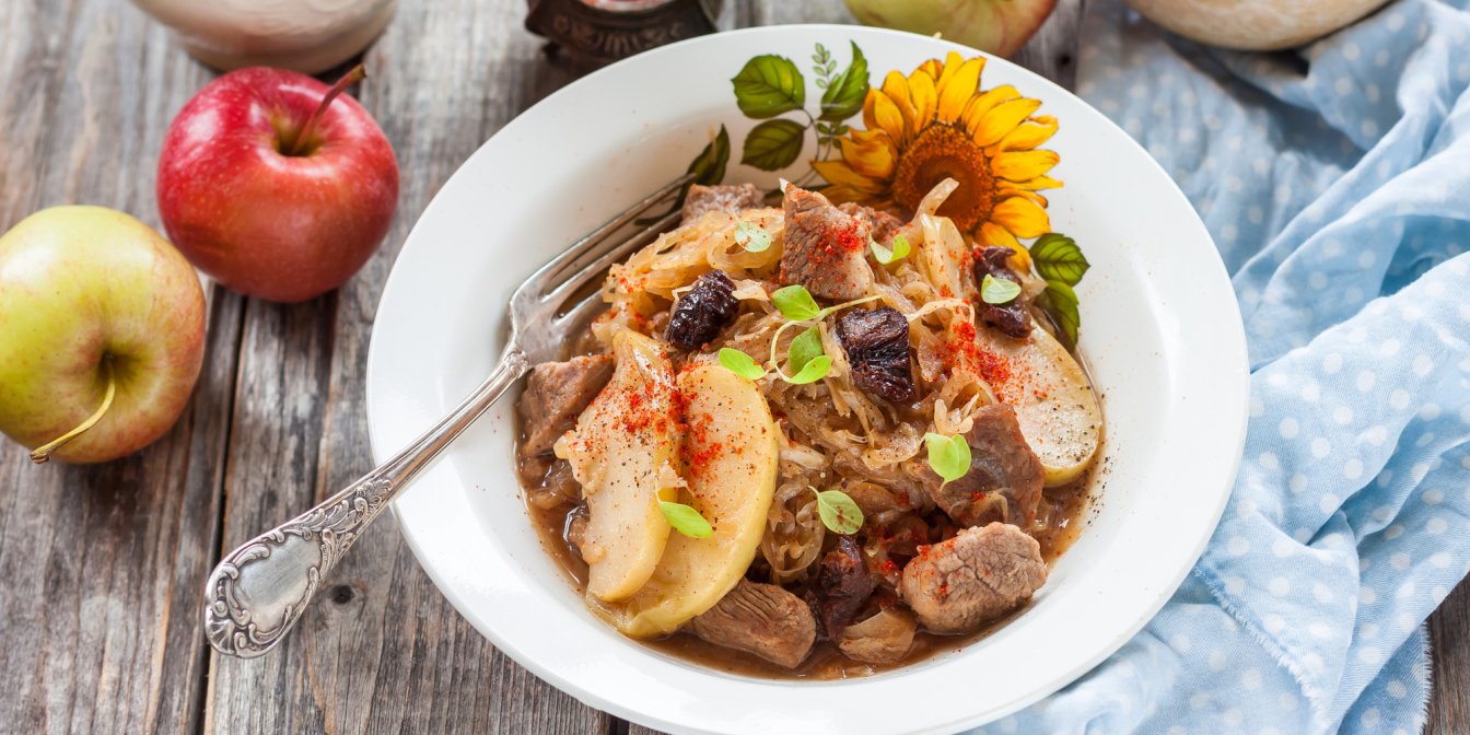 Душенина с капустой и яблоками — простое и незамысловатое украинское блюдо, которое хорошо подойдет для горячего ужина в холодный осенний или зимний день.