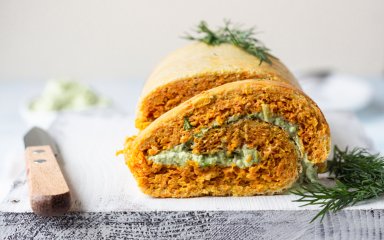 Если среди ваших гостей есть вегетарианцы, тогда вам нужно позаботиться о том, чтобы они тоже покинули ваш гостеприимный дом сытыми и довольными. Этот тыквенный рулет со сливочной начинкой станет хорошим основным блюдом для тех, кто не ест мясо и рыбу.