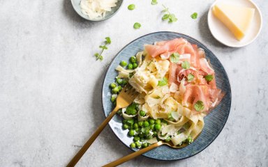 Справятся и новички: паста лингвине с зеленым горошком и прошутто