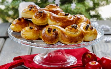 Булочки луссекатт — это шведские рождественские булочки, имеющие ярко-желтый цвет теста, благодаря шафрану, который используют при замешивании теста.
