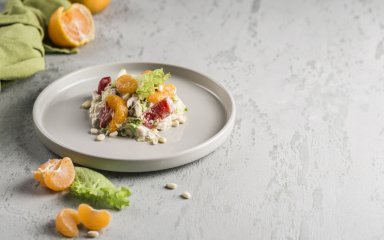 Легкие салаты — одна из самых полезных закусок. Они являются источником витаминов, микроэлементов и клетчатки. Этот салат с курицей, мандаринами и гранатом богат антиоксидантами и белком, помогает сохранить молодость и поддерживать здоровый вес.