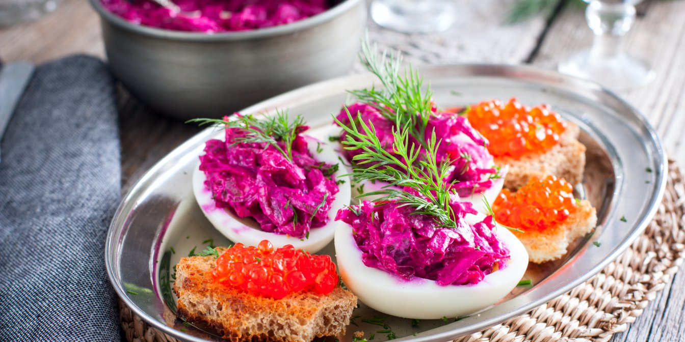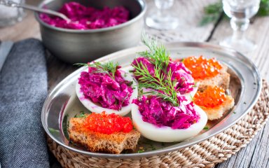 Все привыкли к традиционной подаче салата «Шуба» — многослойное блюдо в салатнице или на тарелке. Но вариантов множество и один из них — нафаршированные яйца. Поверьте, это даже вкуснее, чем вы привыкли готовить.