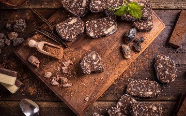 «Шоколадная колбаска» — это традиционный итальянский десерт, который обычно и готовят на рождественские праздники. Такие сладости в основном готовят из какао, печенья (или крекеров), масла, яиц, иногда алкоголя (портвейн или ром). Десерт стал популярен в Европе и во всем мире.