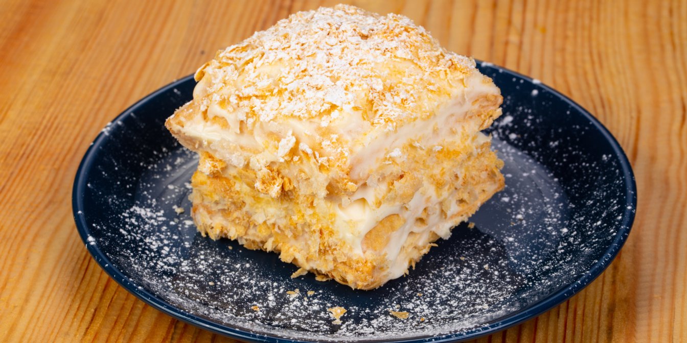 Воздушные пирожные из слоеного теста и белкового крема Milhojas de merengue — испанский вариант торта «Наполеон». Эти сладости — что-то между вкусными трубочками с заварным кремом, многослойным «Наполеоном» и обычными слойками. Чтобы приготовить эти вкусности, нужно немного времени и еще меньше ингредиентов.