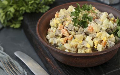 Предлагаем узнать еще один рецепт — «Оливье» с говяжьим языком.