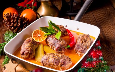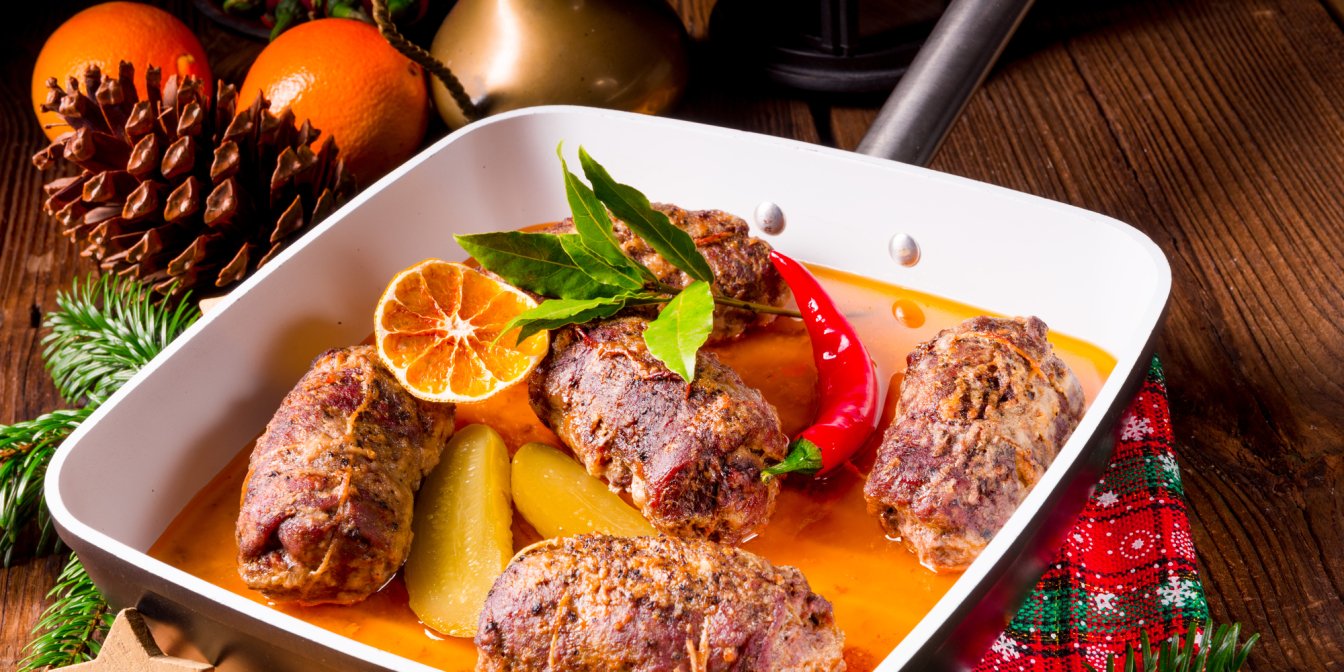 Говяжьи рулетики, фаршированные салом и огурцами, являются достойной альтернативой классическим отбивным.