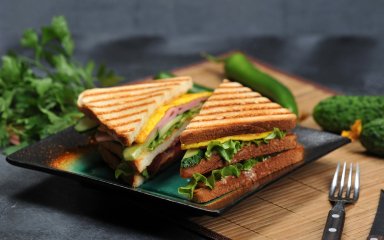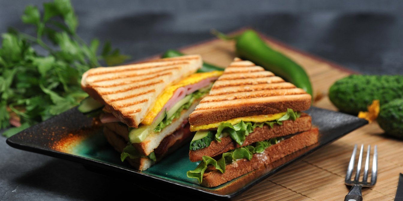Хлеб, майонез, ветчина, сыр, огурец, яйца, листья салата, молоко и специи — вот несколько простых ингредиентов, которые дают жизнь этому простому, богатому по вкусу и очень сытному сэндвичу с омлетом.