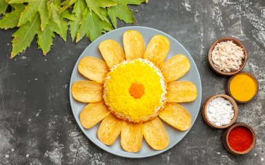 Мы взяли для этого рецепта крабовые плички, мягкий сыр, консервированную кукурузу и зелень, но ингредиенты можно менять по своему вкусу. К примеру, мягкий сыр вы можете заменить на твердый, а крабовые палочки вообще на ветчину или колбасу.