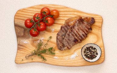 Рибай — один из самых сочных и популярных видов стейков. Его относят к категории премиального мяса благодаря выраженной мраморности, которая делает стейк особенно сочным, нежным и ароматным. Стейк вырезают из реберной части говядины — между 6-м и 12-м ребрами, где особенно много жировых прослоек. Во время приготовления жир плавится, придавая мясу неповторимый вкус.