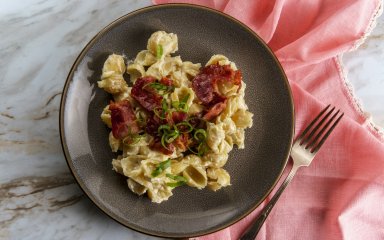 Особенностью этого блюда является сливочный соус из молока, перца и сливочного масла. Так что никакого бешамеля, никакого томатного соуса, только молочные продукты и макароны!