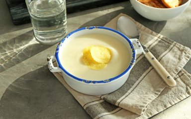 Вы можете приготовить домашний овощной бульон, как в нашем рецепте, или заменить горячей водой или молоком, если у вас мало времени. Всыпьте в жидкость манную крупу и, энергично помешивая венчиком, дайте ей загустеть на огне. В результате получится однородный кремовый суп, который нужно смешать со сливочным маслом и тертым сыром.