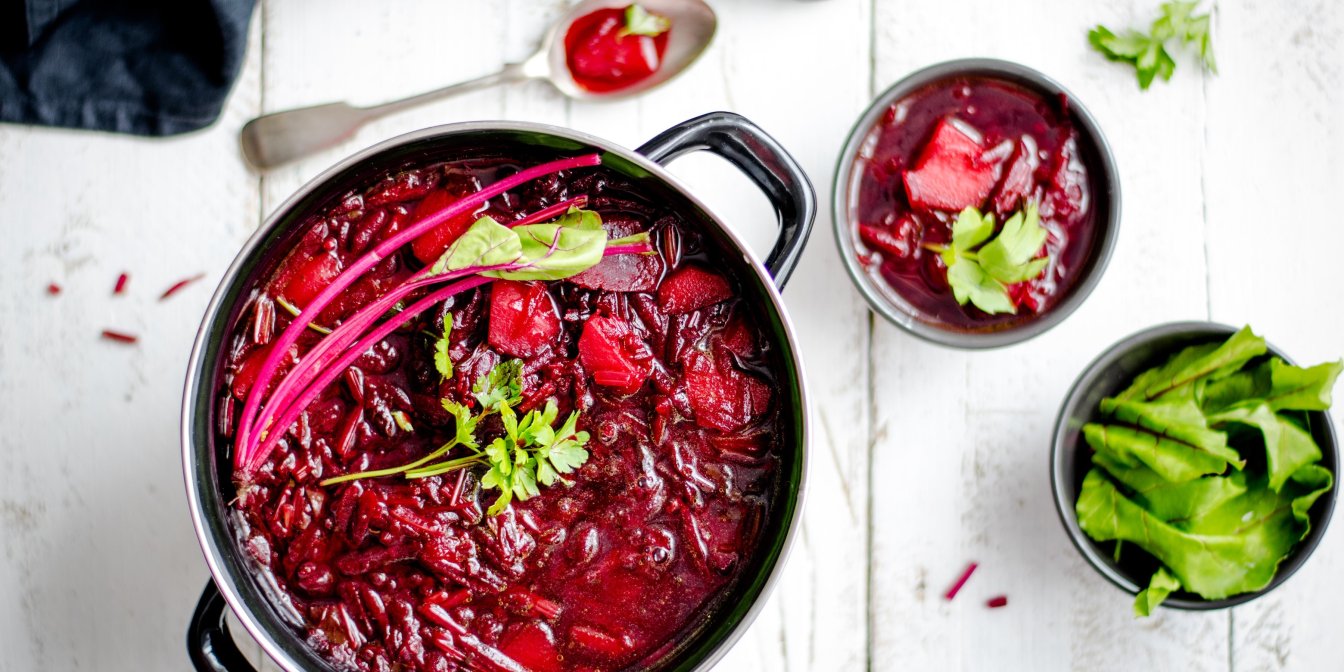 Бренд-шеф ресторанных проектов Fozzy Group и по совместительству наш добрый друг Марко Черветти придумал отличный зимний суп из холодца и свеклы. Для этого блюда вам понадобится уже готовый холодец и вареная (или запеченная) свёкла — вдруг, вы готовили на праздники селедку под шубой или любите салат винегрет, и у вас есть запасы готовой свеклы.