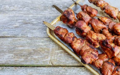Совет SHUBA: если вы используете деревянные шпажки, замочите их в воде на 30 минут, прежде чем нанизывать на них курицу, чтобы они не загорелись на решетке. Блюдо также можно подавать с дипами, например морковными палочками и сельдереем.