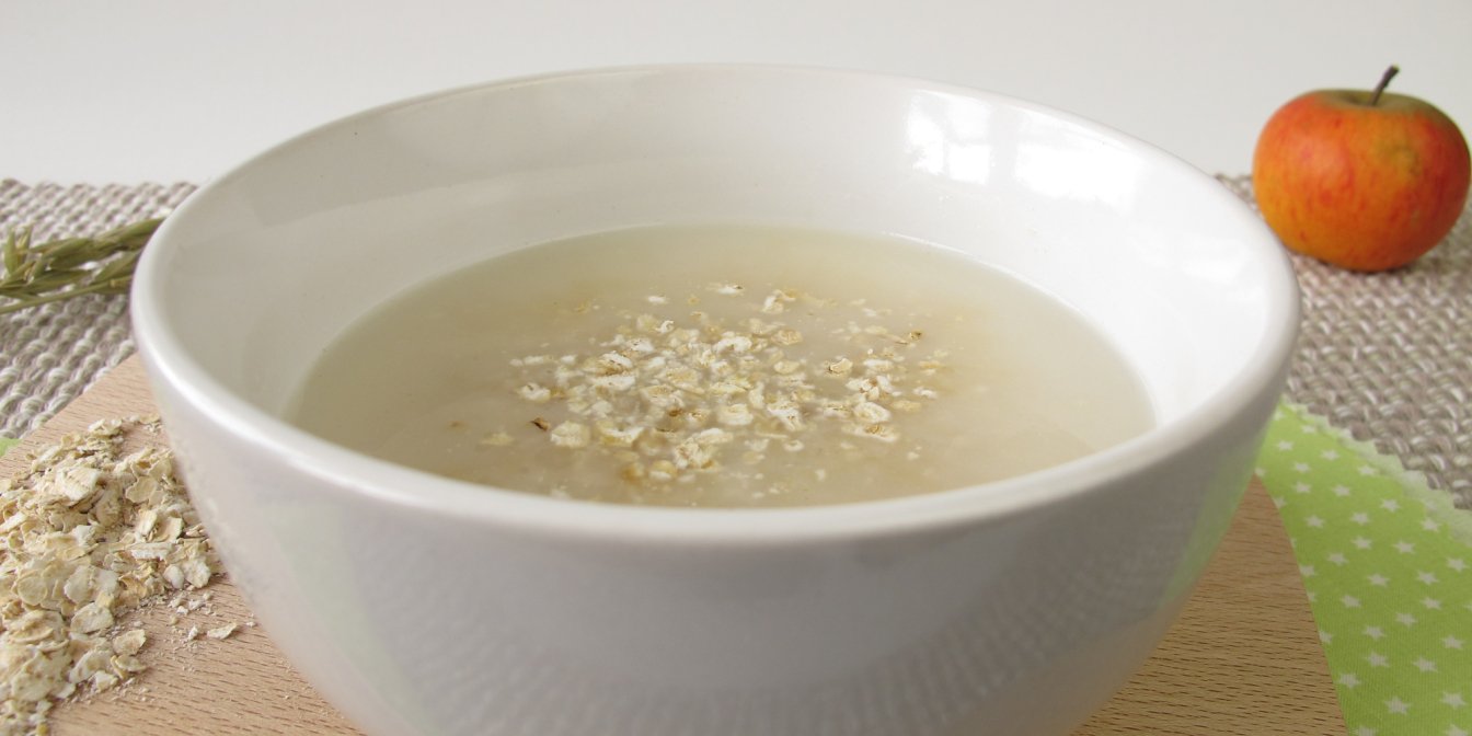 Нагрейте воду, чтобы была хорошо теплая. Вылейте ее в глиняную посуду, добавьте измельченный овес и ломтик черного хлеба.