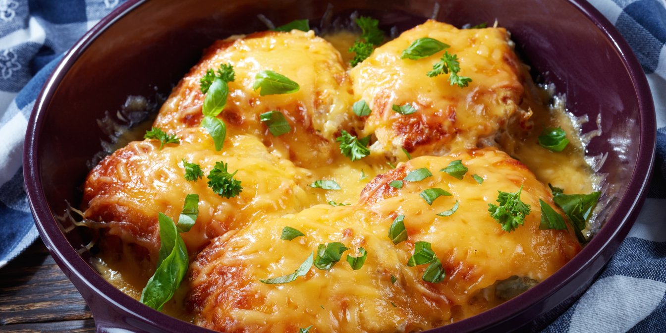 С сырной корочкой: свинина под яблоками и черносливом
