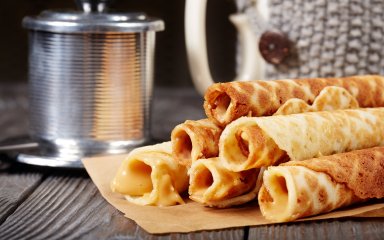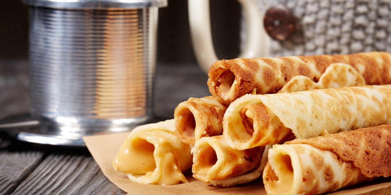 Для ее приготовления вам нужно свернуть вафельные коржи конусами и начинить их смесью из риса, сардин, зелени и майонеза. Но это еще не все! Конусы нужно обжарить в яичном кляре до золотистой корочки.