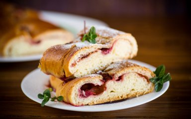 Сдобный рулет с джемом особенно хорош на завтрак выходного дня, но не менее приятно насладиться им между приемами пищи.