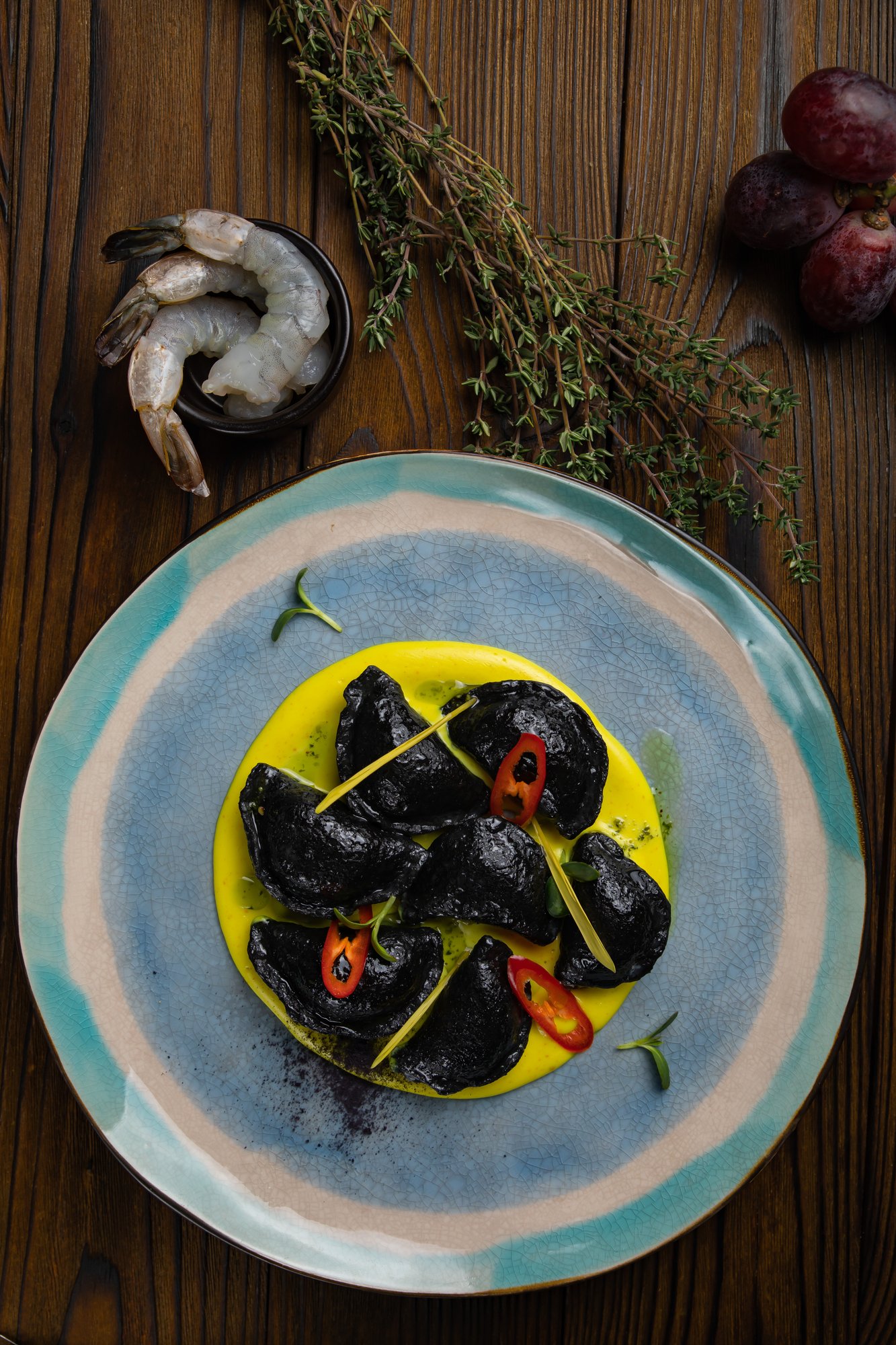 Черные вареники с кальмаром