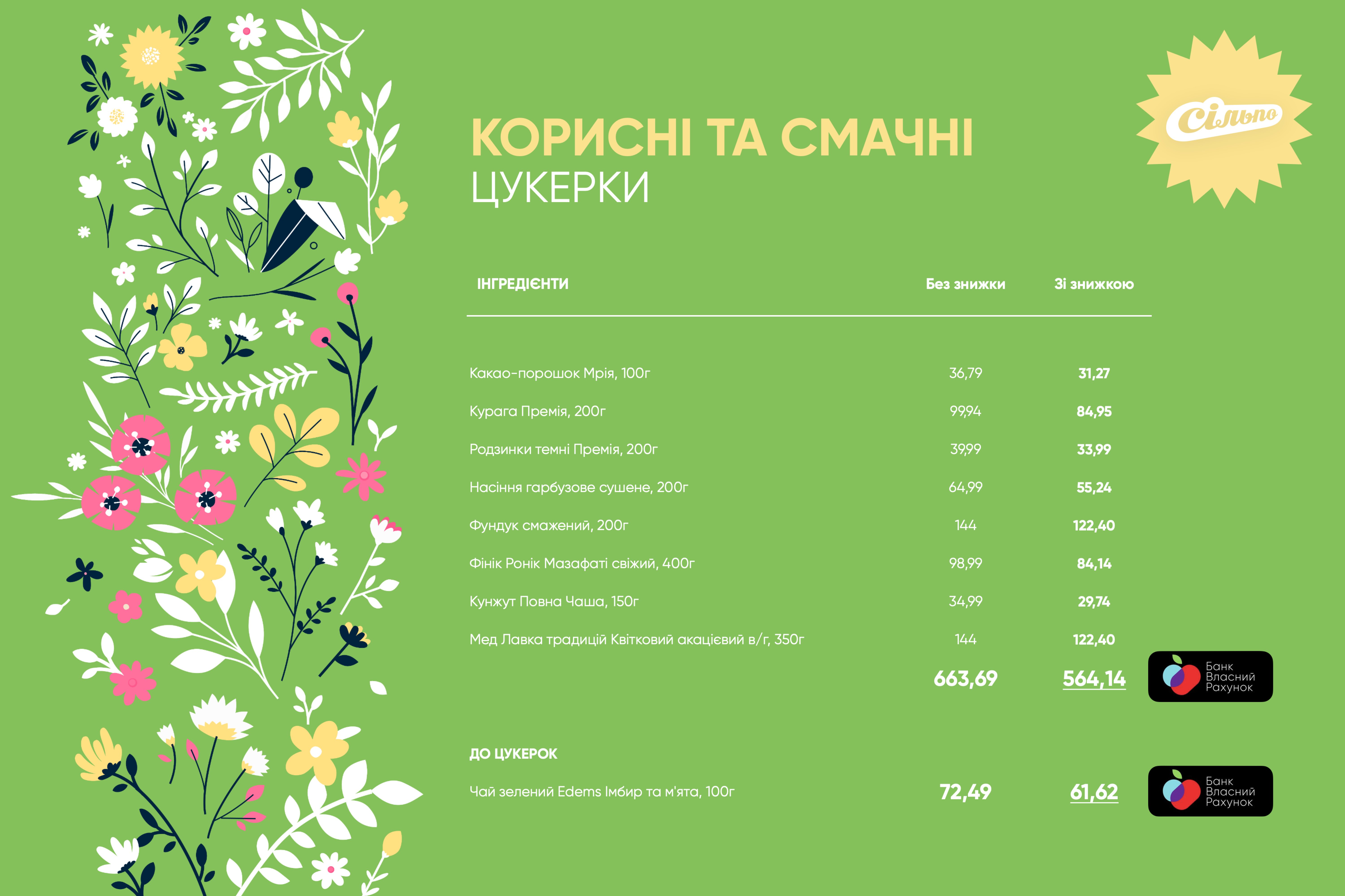 SHUBA сравнила цены на продукты со скидкой и авторитетно заявляет: с картой Банка Власний Рахунок общая сумма в чеке «Сільпо» выходит намного меньше!